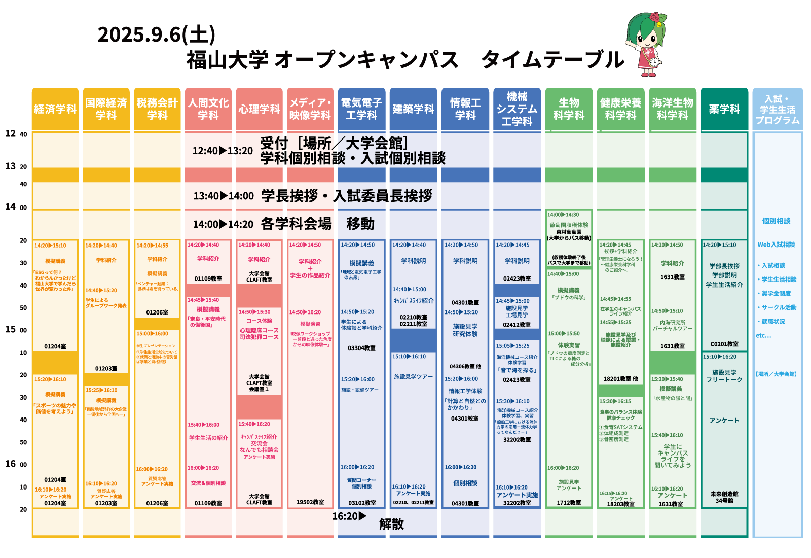 | 福山駅出発時刻 (福山駅北口・社会連携推進センター前) |