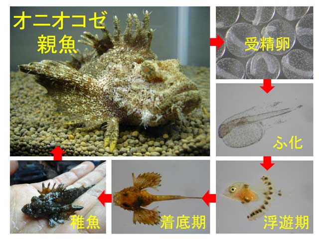 かつての日本の水産業は沿岸漁業での高価格魚の漁獲と豊富な燃料油に支えられた遠洋漁業による漁獲が可能であったことから「とる漁業」が主体でした。しかし,高価格魚の減少,燃油の高騰,200海里規制の国際的な定着によって水産物の安定供給が重要度を増している今,人が育てた稚魚を無主物として海へ放ち,天然の資源とともに管理して持続的な生産に繋げる「栽培漁業」の推進に期待が寄せられています。私たちは沿岸漁業の重要な収入源であるキジハタやオニオコゼなどを対象に稚魚を育てて放流に関する様々なデータを収集,解析します。