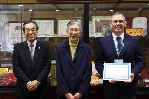 ちなみに、ローズ講師は、本学への赴任前に民間の英会話スクールで勤務していた約10年前にもJALTのこの賞を受賞したことがあり、久々に二度目の快挙となったことを付け加えます。早速、このことを松田学長に報告に上がり、学長もたいへん喜んでくださいました。