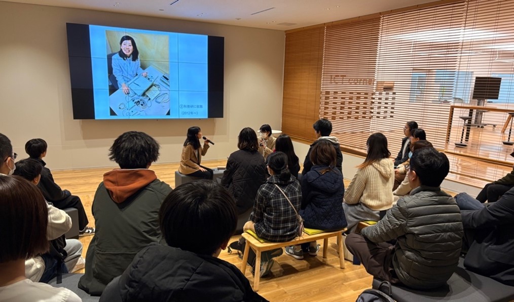 濱本さんの話は学生時代の経験、外部大学への進学、科捜研での勤務、アメリカでの育児経験、そして現在の大学教員・研究者・企業家としての活動など、多岐にわたります。ご自身のこれまでのキャリアを振り返りながら、それぞれの転機でどのような選択をしてきたのか、その選択の背景にはどのような考えがあったのかをお話いただき、参加者に多くの気づきを与えました。