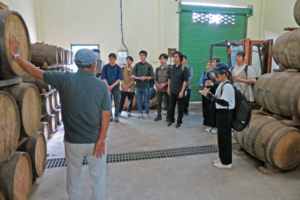福山大学生物科学科では、毎年希望者を募りラオスでの海外研修を実施しています。研修では、ラオスのラム酒メーカー「LAODI」社でのサトウキビの収穫やラム酒造りを体験し、首都ヴィエンチャンや世界遺産ルアンパバーンで文化施設を視察しました。