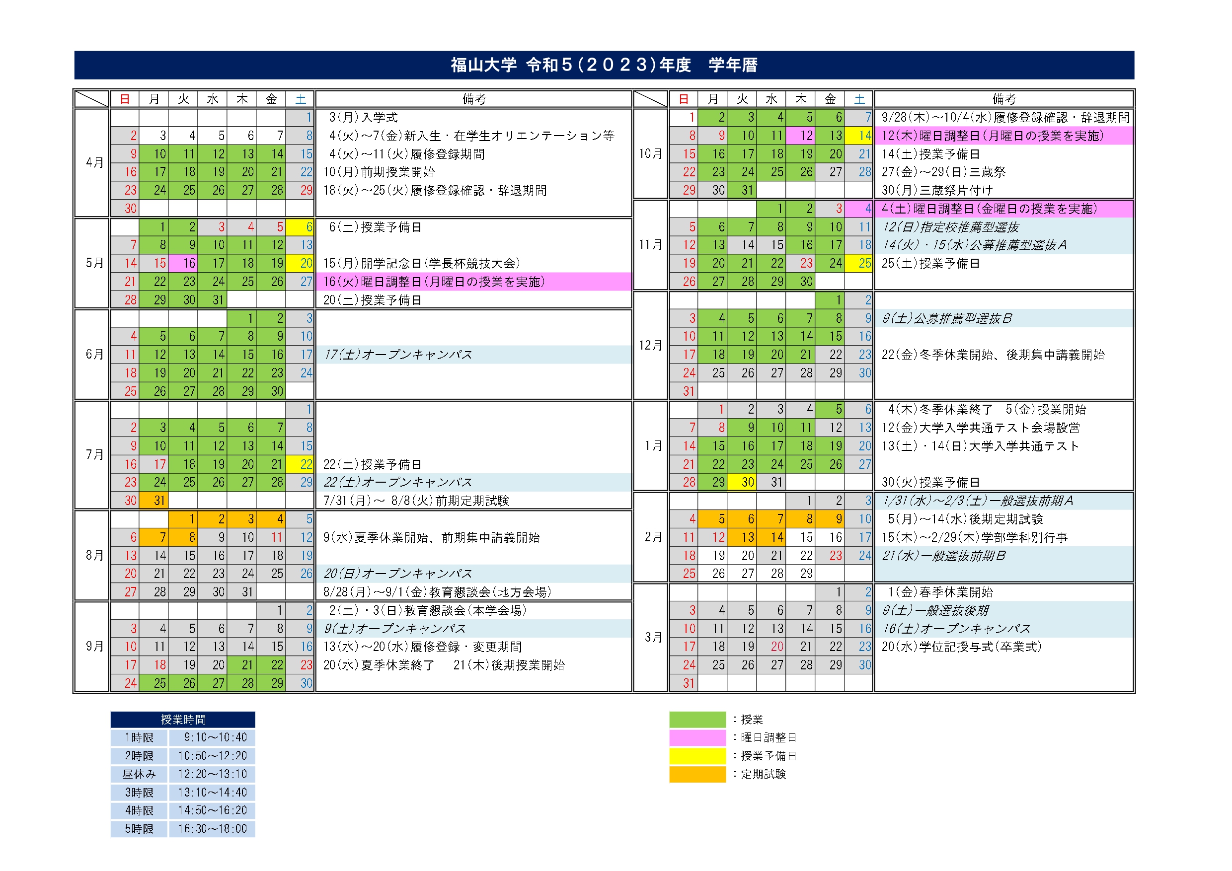 ※春・夏・冬季の休業期間中に補講および集中講義を実施する場合があります。