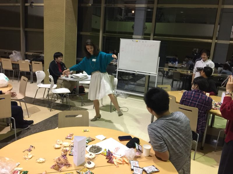 さて、いよいよ交流会の始まりです。まずは、テーブルごとに自己紹介やアイスブレーキングで和らいだ雰囲気を作り上げ、その後は皆で日中文化クイズをしたりゲームをしたりして大いに盛り上がりました。