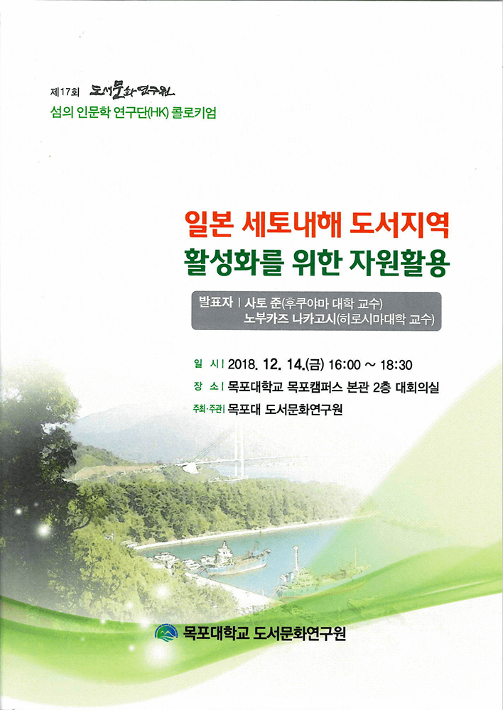 また、同研究所の ホン教授とキム教授は完璧な日本語の使い手で、言語をまたがったコミュニケーションの障壁もありません。両教授及び研究所長は、来年に本学を訪れて研究交流を深めたいと非常に意欲的だったそうです。特に、木浦において進む島嶼周辺の文化研究は、人間文化学部が中心になって進めている『鞆学』と通じるものがあり、共通課題解決に向けた非常に良いディスカッションができるのではないかと期待しています。鞆の浦と言えば、古来より潮待ちの港として知られ、朝鮮通信使の寄港地にも度々指定されたことから、こちらも連携研究としては相性抜群だと思われます。