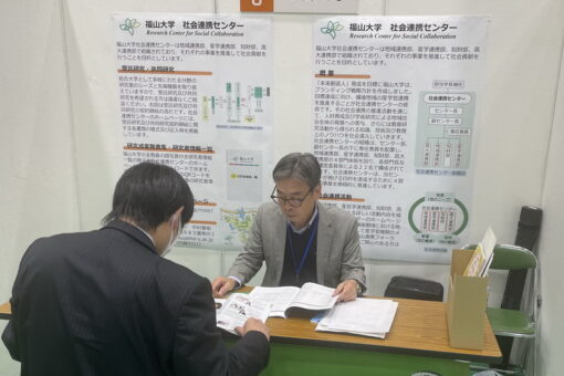 また、社会連携センターが発行している研究者情報一覧の冊子を配布しながら説明することで、教育・研究活動から得られるノウハウを社会に還元するための連携活動に役立てました。さらに、企業が抱える課題を協働して解決するための交流拠点になることを目指して立ち上げた「福山連携フォーラム」の地域連携活動の内容についても紹介しました。