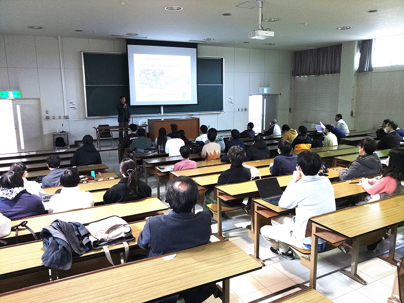今回のセミナーには41名が参加し、本学学生(全学部)と教員、一般の方、新聞社が聴講しました。およそ70分間の講演のあと、50分間にわたり活発な議論が展開されました。とくに目立ったのは、学生たちの質問でした。日頃の授業等で学んでいることから発した質問、地域の方々と取り組んでいる里海再生プロジェクトでの経験を踏まえた“生きた”問い、出身地の海と瀬戸内海との比較に沿った素朴な疑問、などなど。次々と飛び出す学生たちからの質問に、冨山教授も大変よろこんで居られました。また、学生たちの真剣なまなざしに、私も心を打たれました。