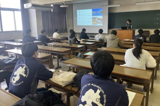 今年度、海洋生物科学科の学外実習では東京都、岐阜県、和歌山県、岡山県、広島県、島根県、高知県にある8つの動物園・水族館などの博物館施設において、11名の学生を博物館実習生として受け入れてもらいました。1月23日には、全国の博物館施設で学んだ4年生たちが、来年度に博物館実習の履修を希望する3年生に向けて、博物館実習報告会を開催しました。