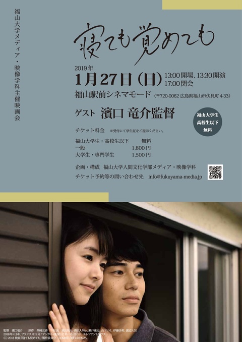 入場料:高校生以下及び福山大学生は無料(学生証をご提示ください)。その他の方は映画館の既定の料金となります。