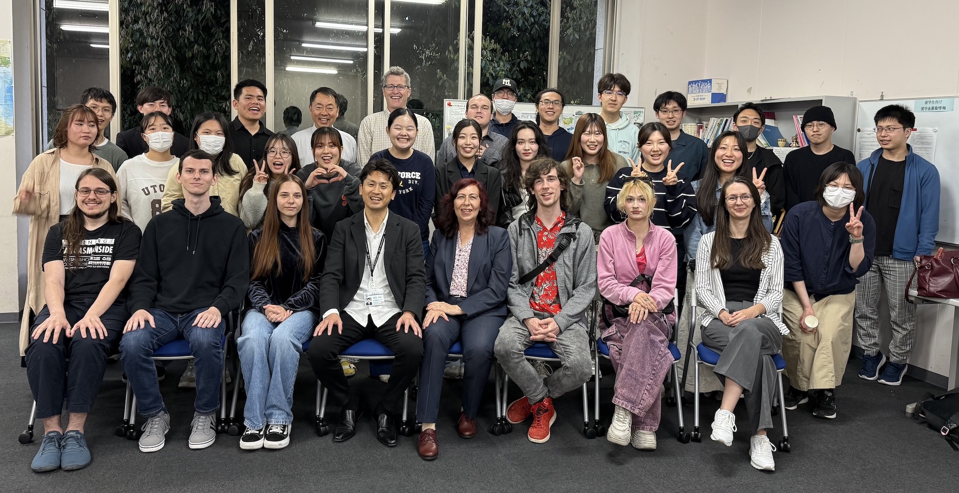 第一弾は、ソフィア大学からの交流教員「ロシツァ・シメオノヴァ先生を囲む会」。ヨーロッパの教育文化交流を担うエラスムス・プラス・プログラムの一環として来訪された先生は、ブルガリア人留学生とともに、英語での自由な対話を通じて、ソフィア大学の魅力やブルガリア文化を紹介。参加学生にとっては、異文化に触れながら英語でコミュニケーションを楽しむ貴重な機会となりました。