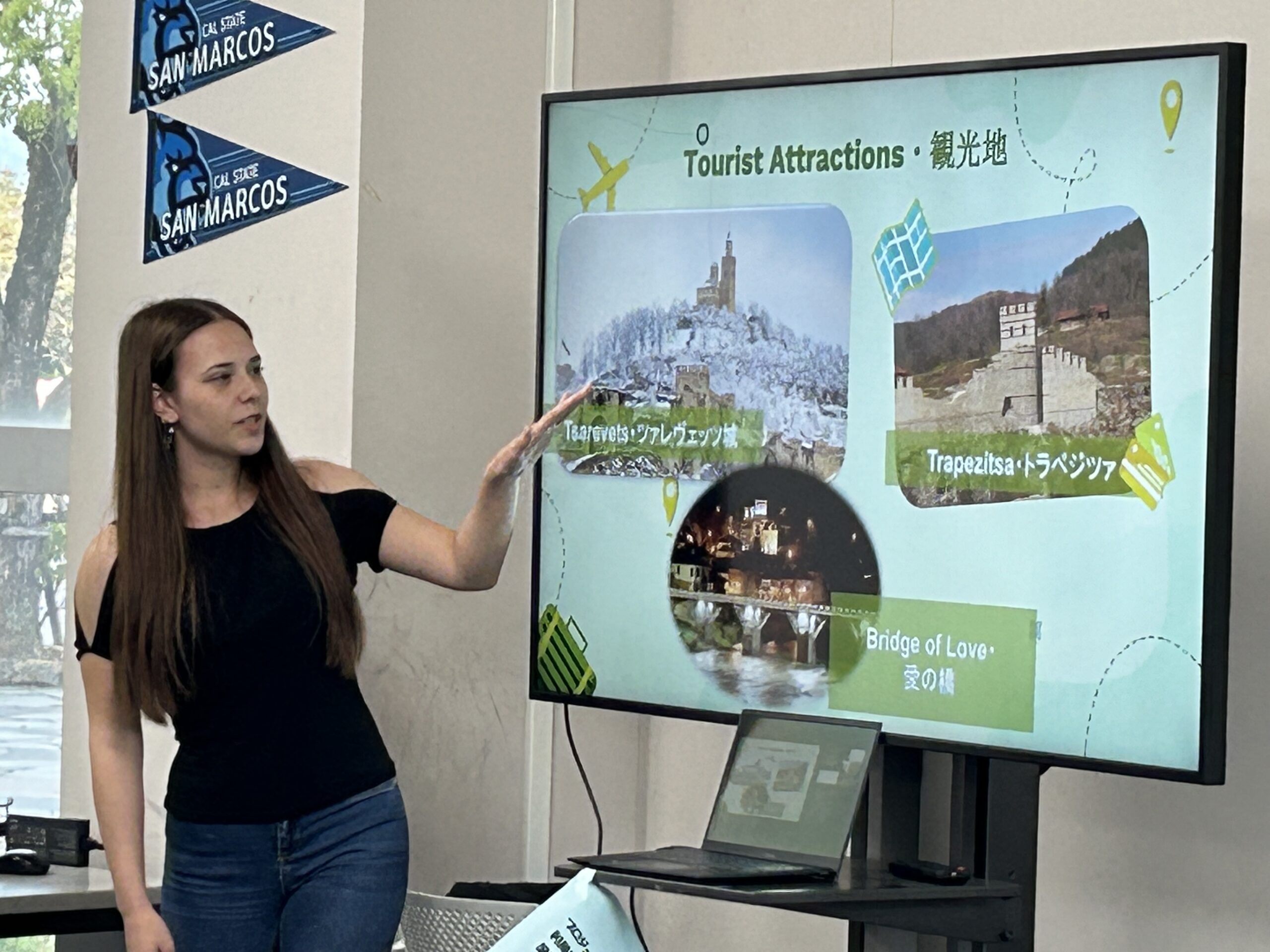 さらに、国際センターが提供する教養科目「国際化と地域創生」でも、ブルガリアに焦点を当てた特別授業を2回にわたり実施。ロシツァ先生による民族音楽やキリル文字、文化背景の紹介に加え、5月には心理学科の大杉朱美准教授と大学教育センターのSuzuki Heather助教による、ブルガリアでの交流体験を語る回も予定されています。
