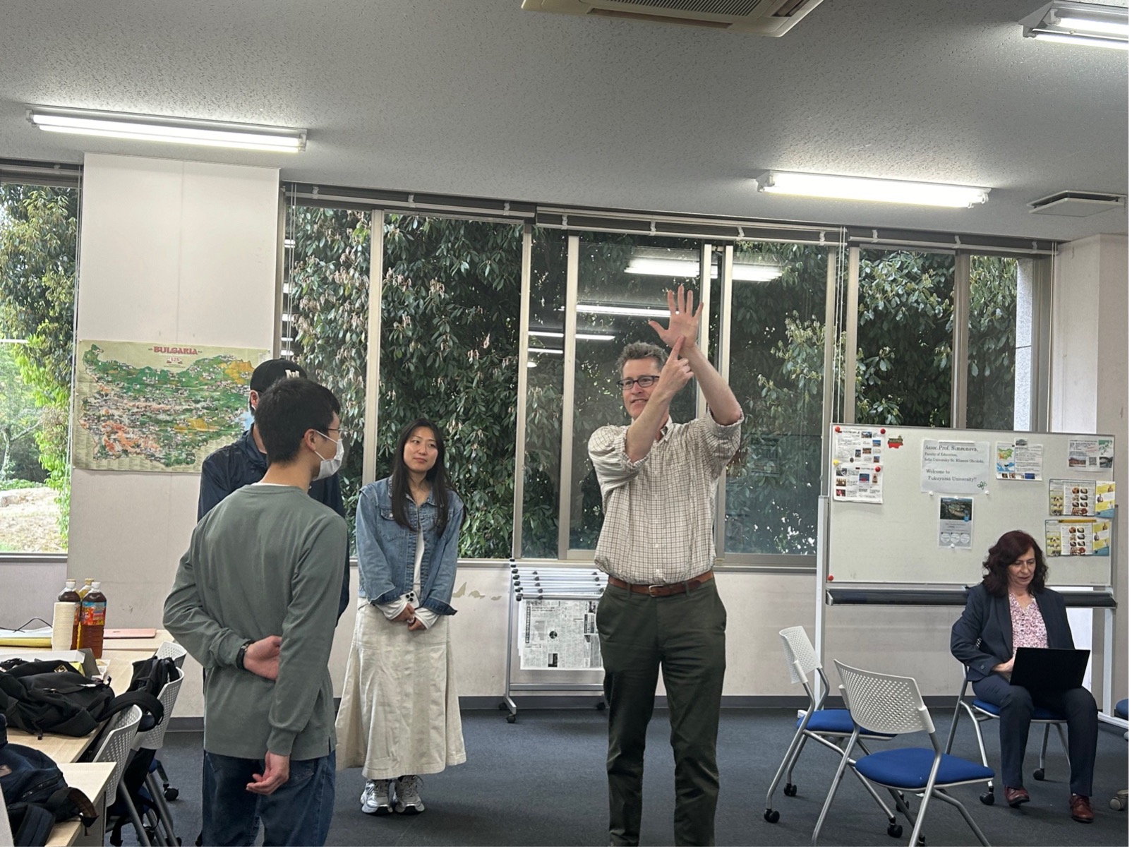 イベントの中心的な役割を果たしたのは、国際センター副センター長であり、GCCの座長を務めるBisset Ian James(ビセット イアン ジェームス)教授。ブルガリアからの交換留学生たちとともに、企画から運営まで学生主体で進めたこのイベントは、「学び」と「楽しさ」が共存しています。当日の様子は、下の写真にも表れています。異文化に触れながら自然と笑顔があふれた交流の瞬間を、どうぞご覧ください。(投稿は趙です。)