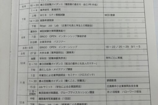 昨年度に続き、 経済学部・人間文化学部・工学部・生命工学部の3年生と、薬学部の5年生、さらに大学院1年生に向けて就職に必要な情報を網羅した福山大学オリジナルの「就職の手引き」を配付しました。この手帳は、福山大学後援会のご支援により作成しています。