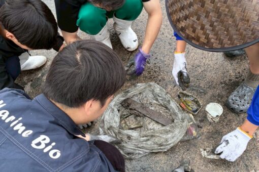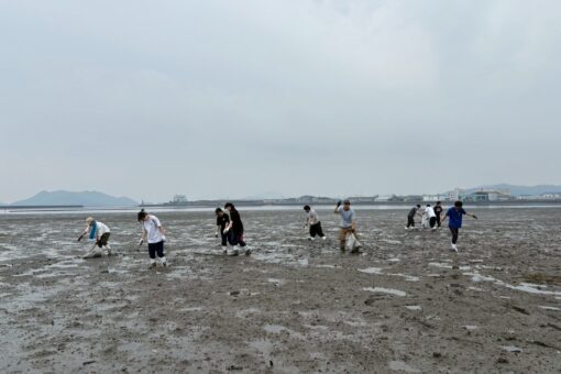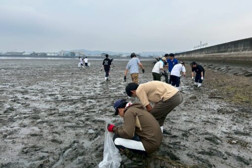 学長から一言:海洋生物の観察でお世話になっている松永湾への感謝と環境保全の願いを込めて、海洋生物研究会が毎年実施している清掃活動に、今年はYRCボランティア部のメンバーも加わって大いに頑張りました。干潟に残された多くのゴミを片付けることができたとともに、海辺の生き物にも出くわす良い機会になったようです。皆様、本当にお疲れ様でした。