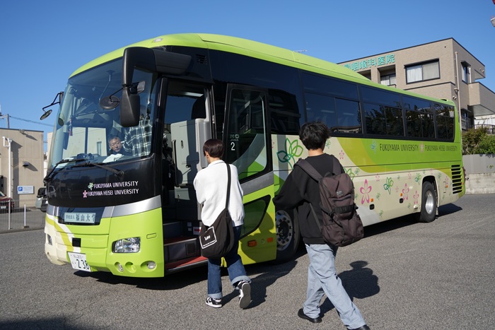10月24日に1年生配当科目である教養ゼミの一環としてマツダ株式会社を加藤、坂口が引率して訪問しました。スクールバスで大学を出発し、府中町にあるマツダ株式会社に向かいました。