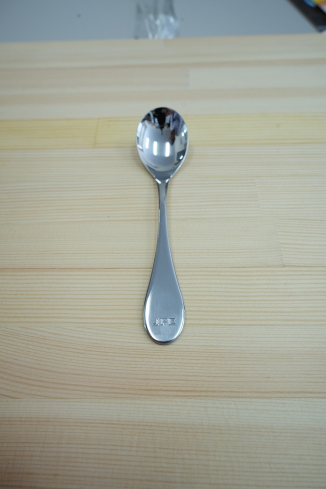 記念品として、JFEの鉄で作ったスプーンを頂きました。JFEが開発したNiフリーのステンレス鋼で、高級感のある光沢をしています。