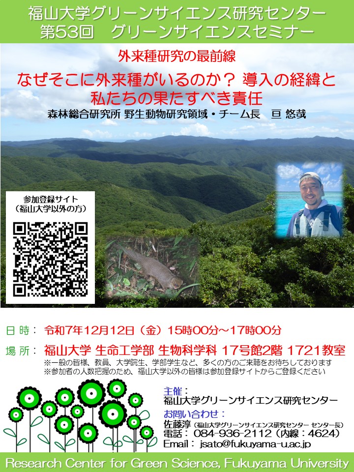 【グリーンサイエンス研究センター】外来種の専門家によるセミナーを開催(12/12)