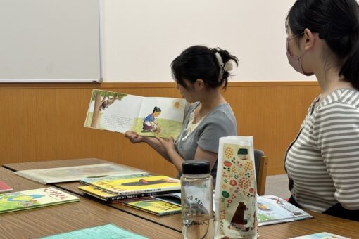 絵本の支え方や読むときの抑揚のつけ方など、職員の方から読み聞かせのコツを教えていただきながら実践していました。