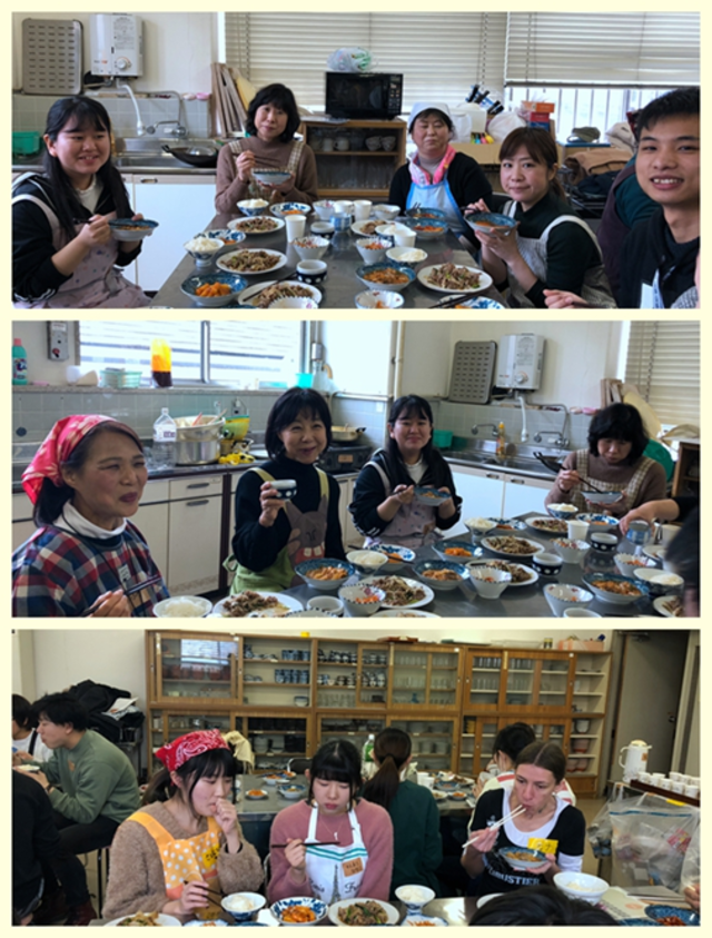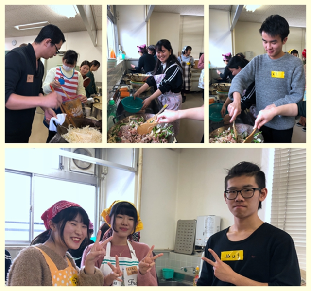 (留学生と日本人学生と協力して調理し、楽しい交流ができたようです。)