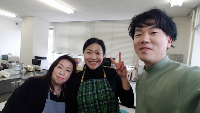 また、当日は強力な助っ人が1人いらっしゃいました。元くんのアルバイト先の先輩である河野まどかさんです。河野さんは韓国が大好きな方で、何回も元くんを家に招待し、手作りの韓国料理を振る舞ったそうです。お袋の味と一緒だと今回の料理教室にも参加していただき、一緒に料理を指導していただきました。