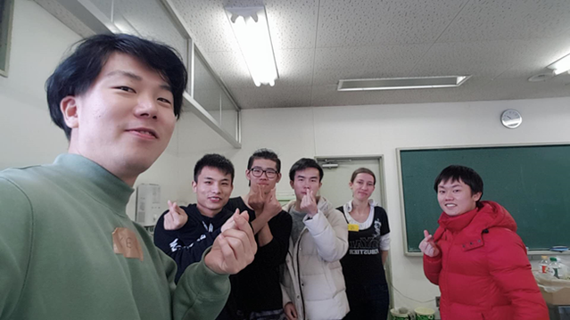 元くんは、韓国から中国南方の名門大学である中山大学に留学後、福山大学のダブルディグリー協定により昨年の4月に経済学部へ編入しました。韓国語はもとより、中国語、日本語、英語にも堪能なマルチリンガルです。料理は得意分野ではないそうですが、試行錯誤してやっと本場の味を出すことができ、レシピを固めてくれました。