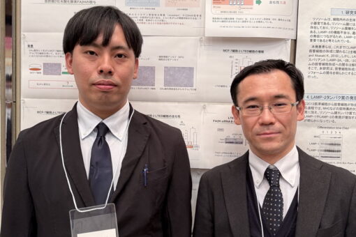 福山大学からは、薬学部大学院薬学研究科2年の要田恒希さん・竹田修三教授、坂根洋准教授、薬学科5年の飯田航平さん・秦季之教授による3件のポスター発表が行われました。また、このうち要田恒希さんが舞台発表も行いました。