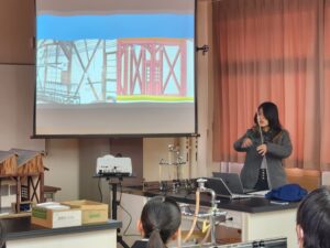 大学生の説明が終わった後は、高校生たちが授業で制作したジオラマに設置する作品の発表です。どれも素晴らしい作品です。
