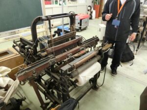 参加した3年生は、9月から特別ゼミで福山工業高校にあるシャトル織機のデータ化を行っていました。また、1年生は、昨年8月から織元工場を見学し織元工場のジオラマ制作に取り組んでいました。
