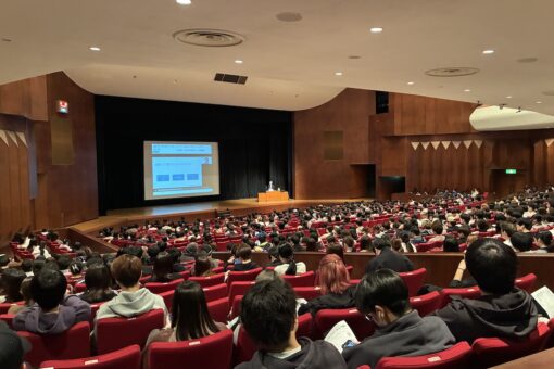 挨拶の中では、コロナ禍を経験した今の学生たちが、人と関わりながら成長する機会を十分に持ちにくかった世代であることにも触れられました。そのうえで、知識を身につける「練習」だけでなく、人や社会の中で自分を試し、関わり合いながら学ぶ「稽古」がこれからは大切になること、そしてインターンシップはまさにその実践の場であることが、力強く語られました。