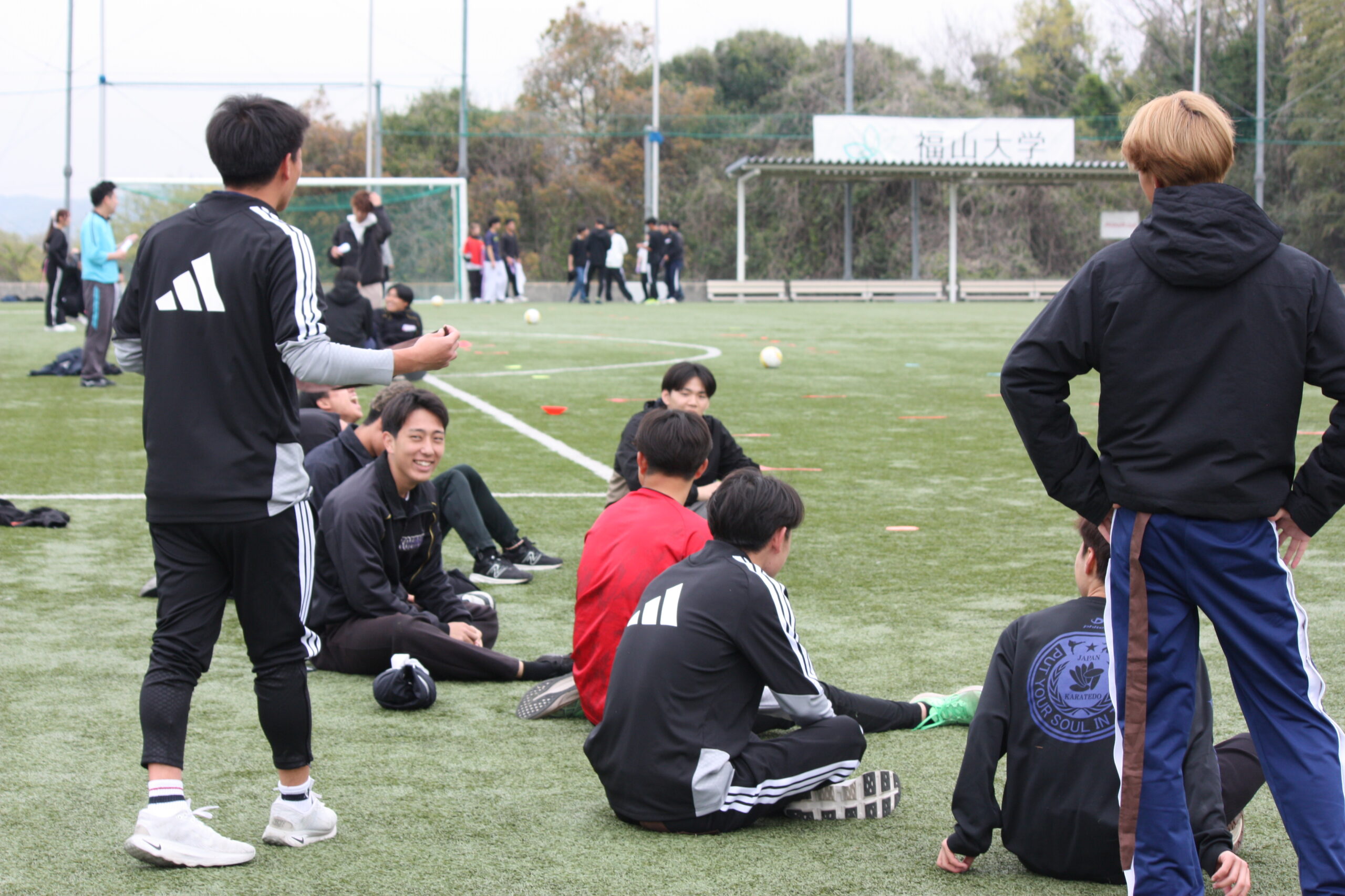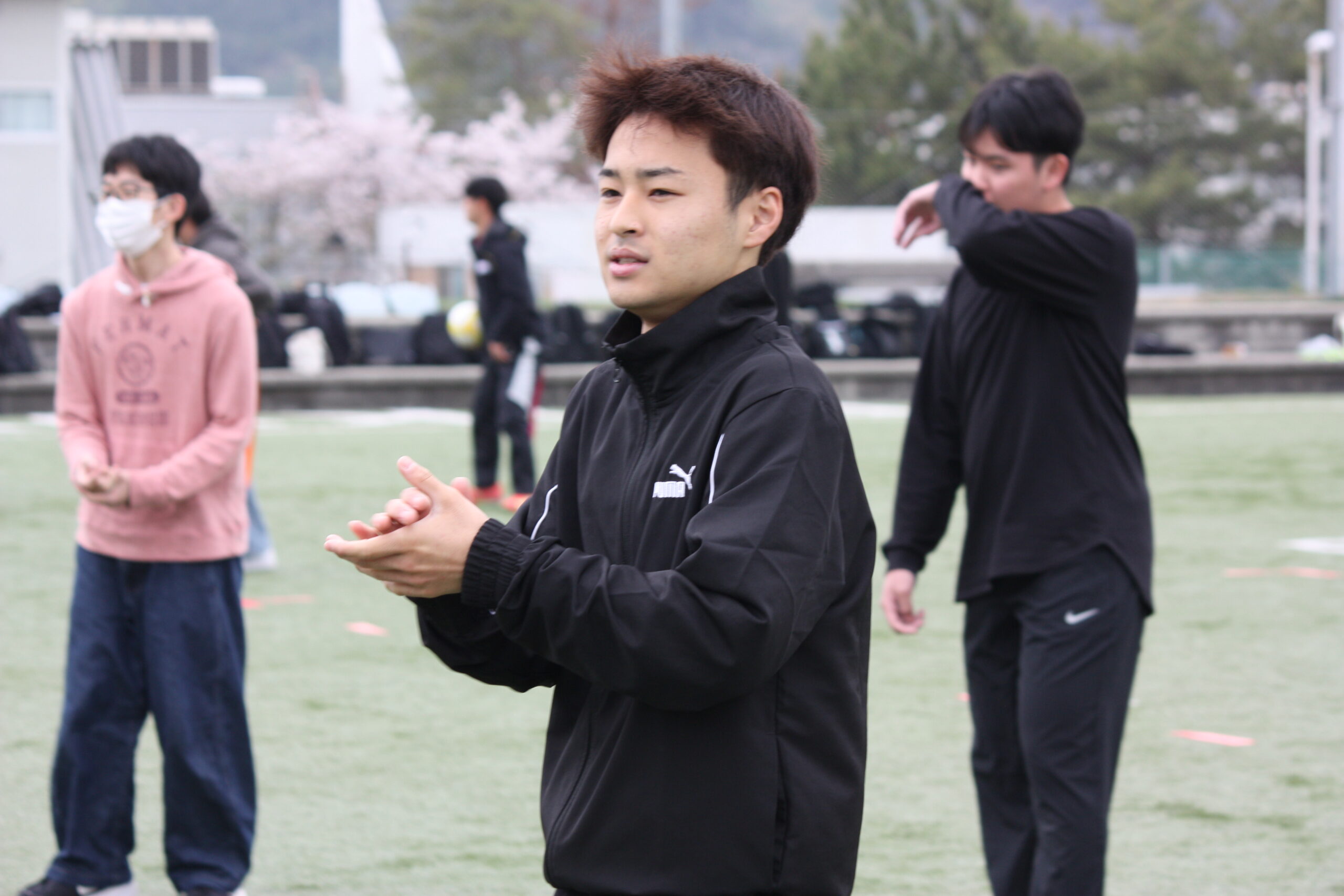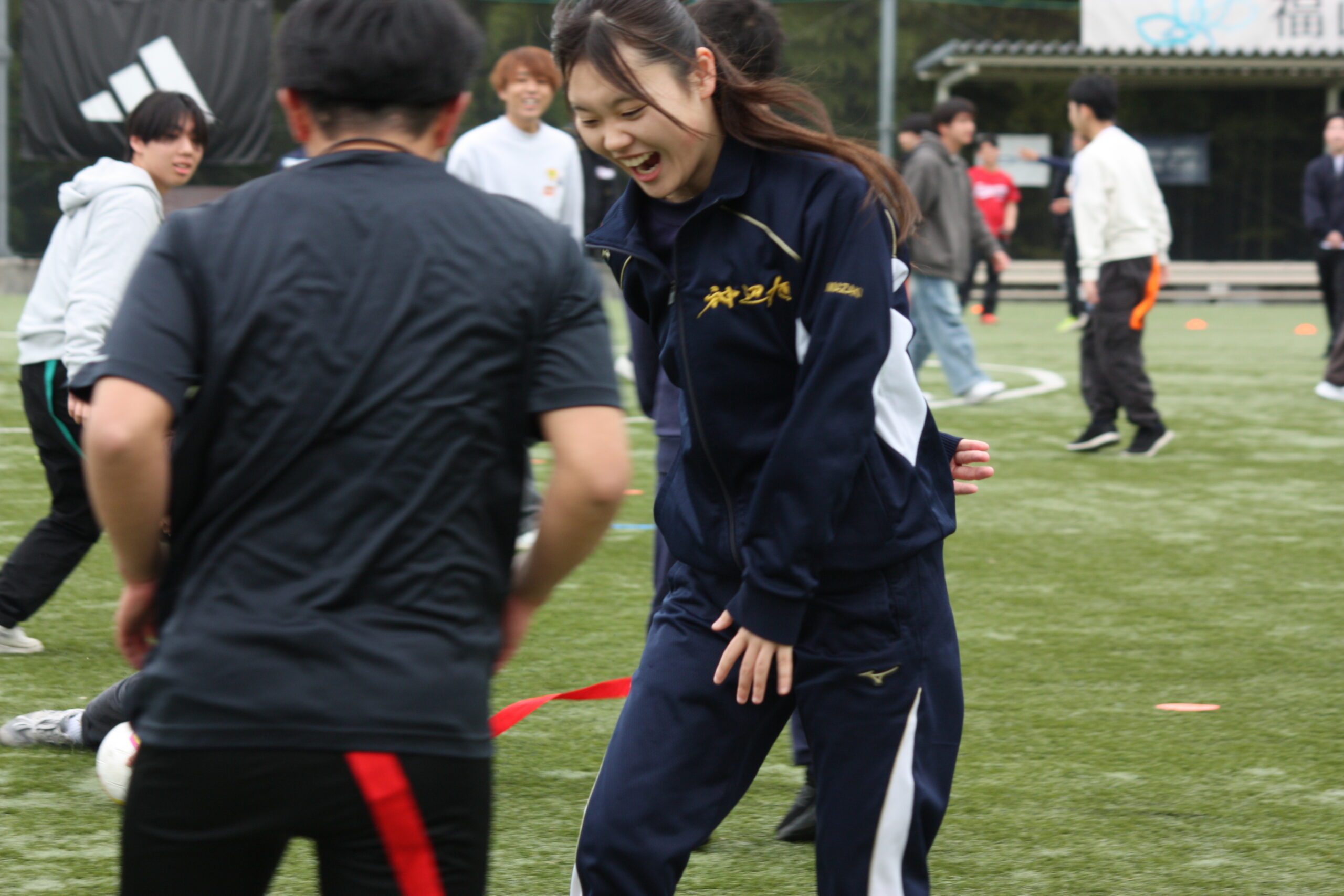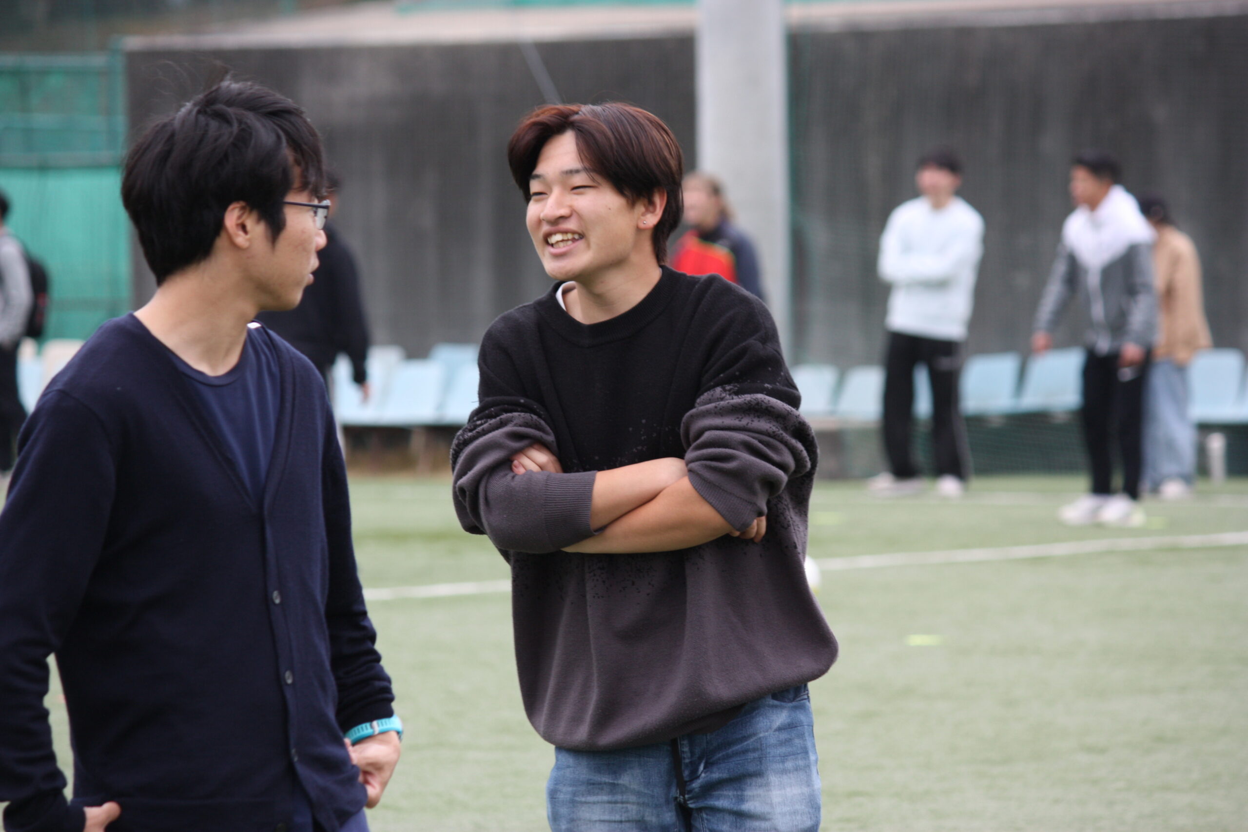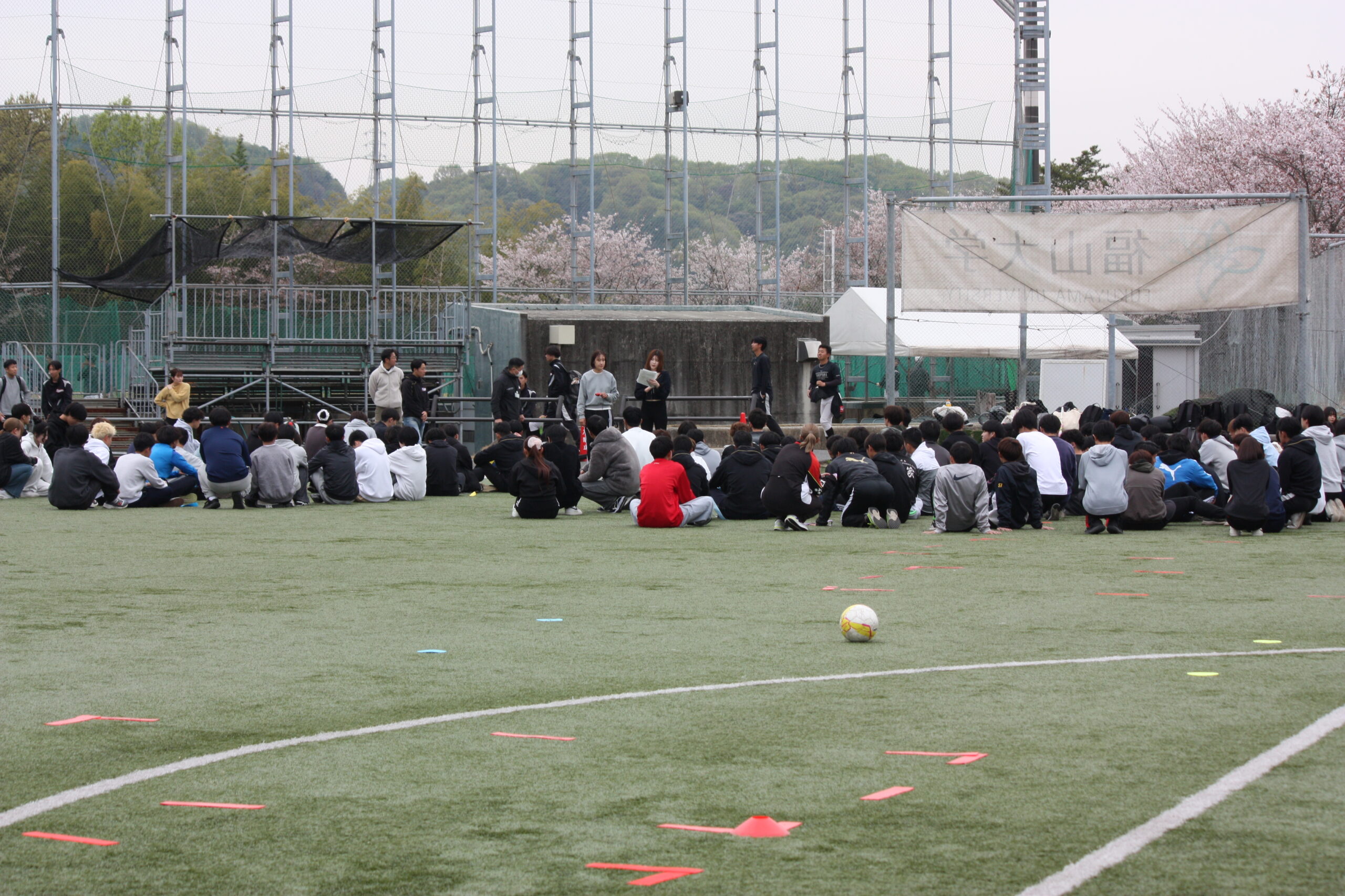 入学したばかりで、まだお互いに少し緊張した空気感が漂っていた午前中。しかし、広々としたサッカー場に集まった新入生たちの目には、これからの活動に対する期待と少しのドキドキが入り混じっているようでした。今回のプログラムの運営は主にスポーツマネジメントコースの先輩たちが行いました。