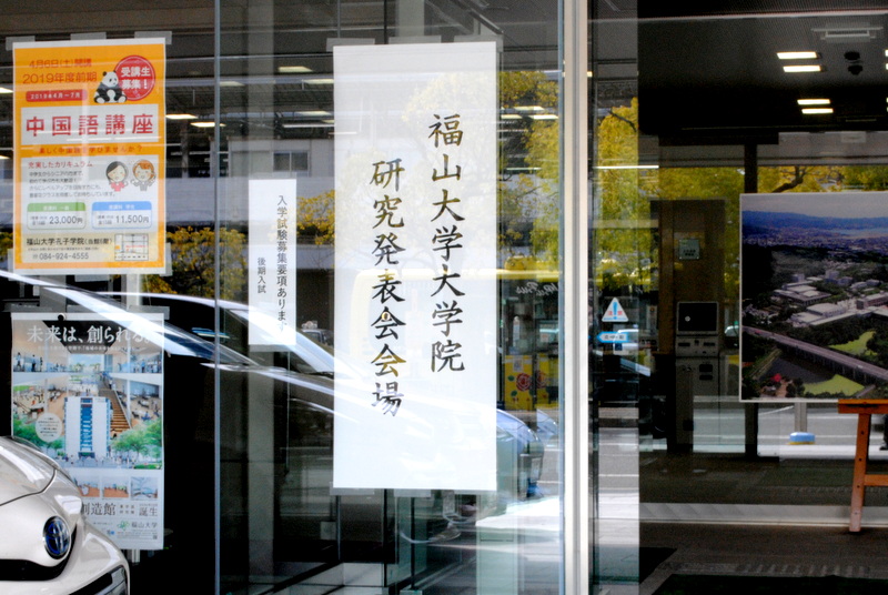 3月2日(土) にJR福山駅北口すぐの福山大学宮地茂記念館1階で、福山大学大学院生による研究発表会が開催されました。この様子を工学部スマートシステム学科(フェイスブックはこちら)の伍賀が紹介します。この研究発表会は、経済学研究科、人間科学研究科、工学研究科、薬学研究科の主として大学院1年生によるポスター形式の発表会で、総合大学である福山大学の特徴を発揮した広い分野の研究発表で、学外の方にも参加していただき、盛況な発表会となりました。(全部で15件の発表がありました。詳しくはこちら)。