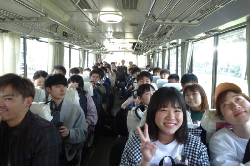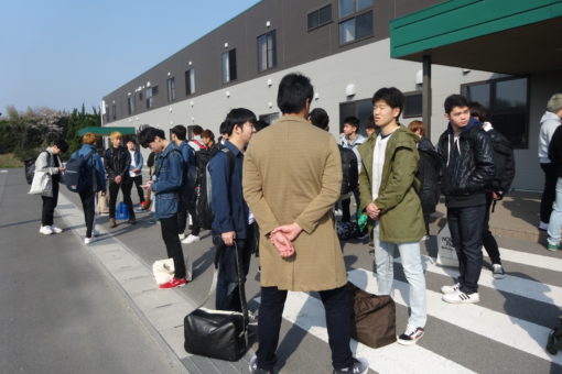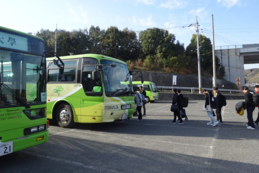 さて、いよいよ出発です!(福山大学駐車場にて)