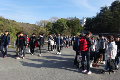本年度は、経済学部、人間文化学部、工学部と生命工学部生物工学科と生命栄養学科の計3学部10学科の新入生(692人)は「ツネイシしまなみビレッジ」、生命工学部海洋生物科学科の新入生(114人)は「尾道ふれあいの里」、薬学部の新入生(108人)は「福山ふれ愛ランド」において行いました。