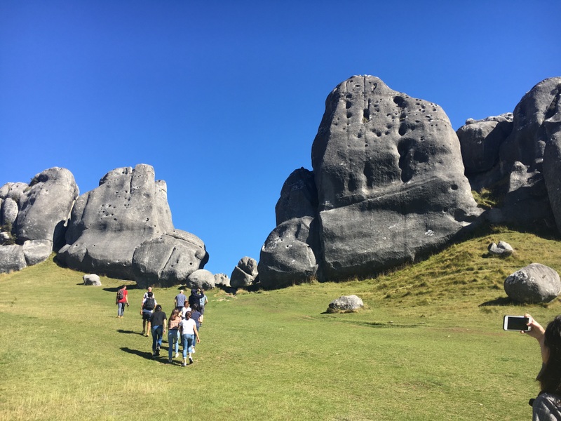 また、週末の休みには、ツアーでクライストチャーチ市カンタベリー地方の郊外にある、キャッスルヒルを中心とした国立公園に行きました。ここは、数年前に「ロードオブザリング」の映画の撮影が行われたという地域で、雄大な自然と幻想的な光景が広がっていました。市内からバスで1時間ほど移動し、国立公園の様々な名所を回りました。