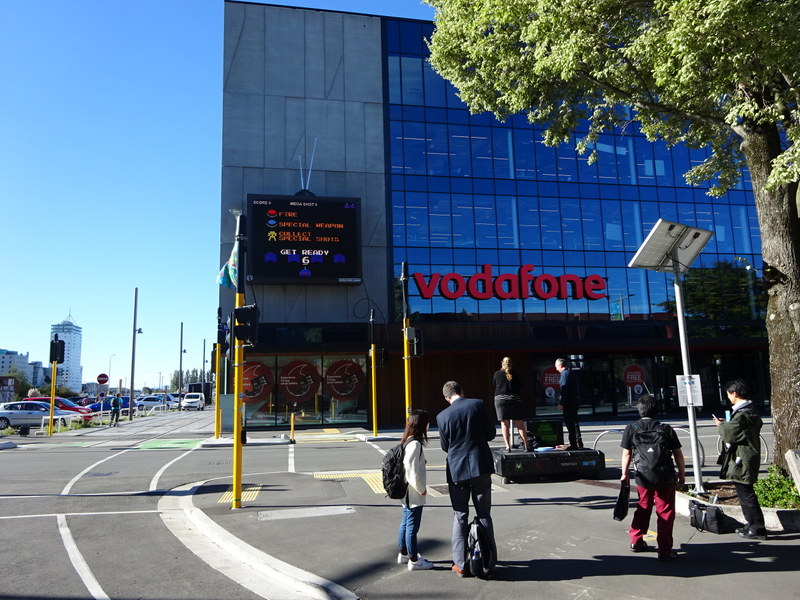クライストチャーチ市街の面白い施設、壁のモニターで体感ゲームができる!