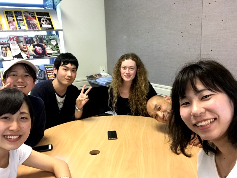 サークル活動のようなカンバセ―ションクラブで交流(Vサインが僕)