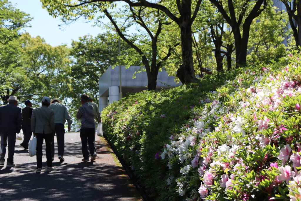 今日は天候にも恵まれ、暖かい日差しとゆったり流れる時間の中、皆さんのんびりとつつじの花を鑑賞されました。 参加された方々からは「身近にこうして四季を楽しめるところがあって嬉しい。毎年楽しみにしている。」とお声を掛けていただきました。