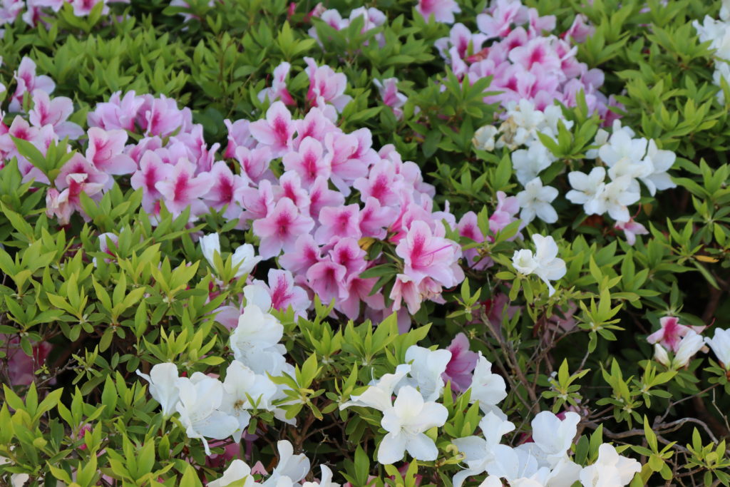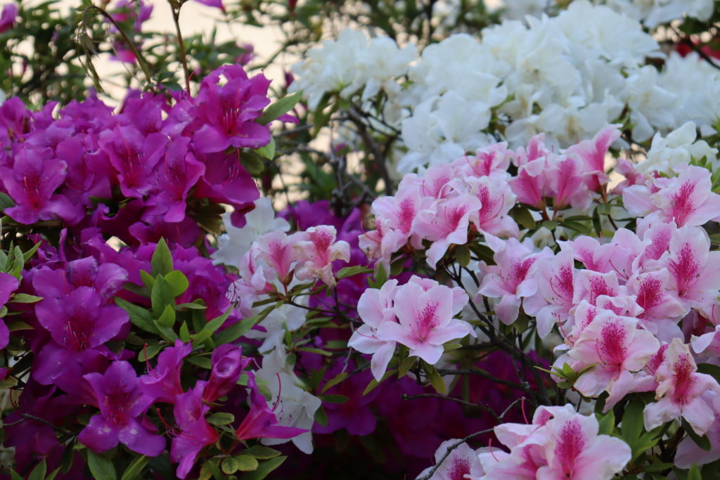 学長から一言:1か月前は桜一色でしたが。。。連休明けはツツジの多色刷りになりました!!!多彩!!!