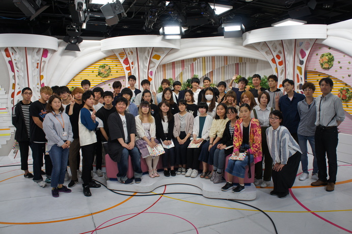 今回もまた生放送番組なんしょん?をスタジオで見せていただき、緊張の瞬間を味わいました。放送後にはアナウンサーの方やお笑い芸人の方に声をかけていただき、嬉しさの余り硬直する受講生の姿も見られました。(笑)
