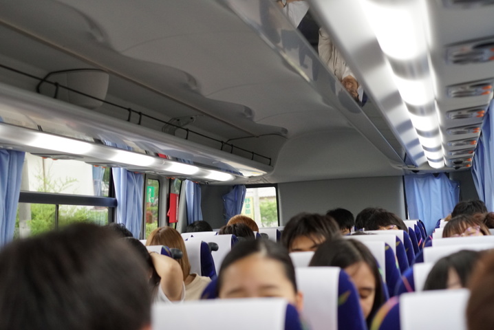 見学をした6月15日はあいにくの雨模様となりましたが、行きのバスの中では元気な声が響いていました。イオンモールの前で、「マスメディア論」をご担当いただいている非常勤講師の井ノ上先生と待ち合わせ、さっそくミルンに向かいます。