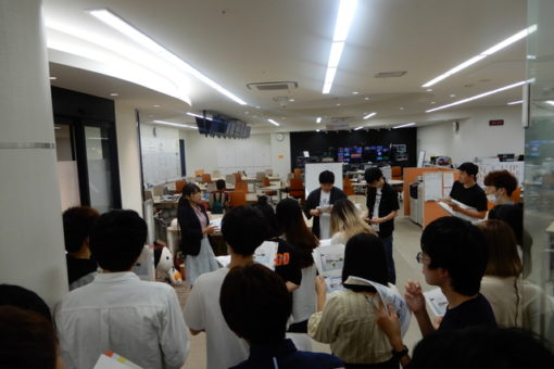 放送局を「見える化」するためにどのような工夫がなされてきたのかについて伺ったり、映像編集作業がチームワークのもとに行われているさまについて見せていただいたりしました。受講生のみなさんも興味津々でしっかりメモを取っていましたよ。