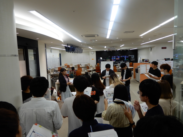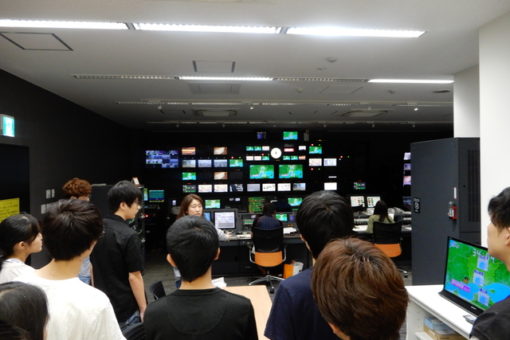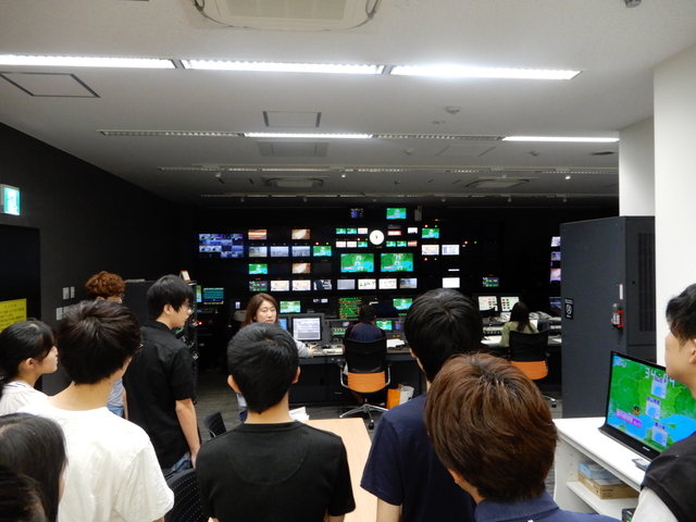 見学は2グループに分かれて行われました。報道の仕組みについて映像で学んだ後に、局内をご案内いただきました。