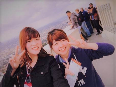私たちは同じプログラムの参加者とともに“グリフィス天文台”に行ったり、野生のアザラシと接近できる“ラ・ホヤビーチ”へ行ったり、様々な観光名所を巡りました!グリフィス天文台からは、あの有名な“HOLLYWOOD”の文字が見えました!ちょっと小さくて見えにくいですが、この文字を背景に写真を取りました。