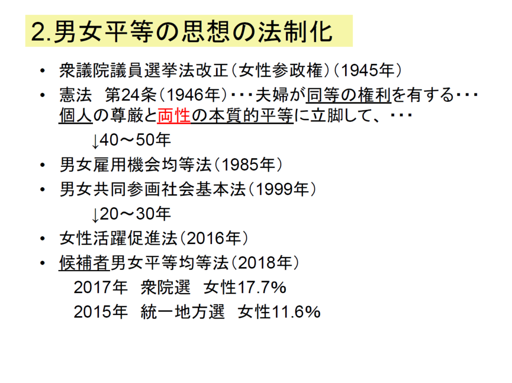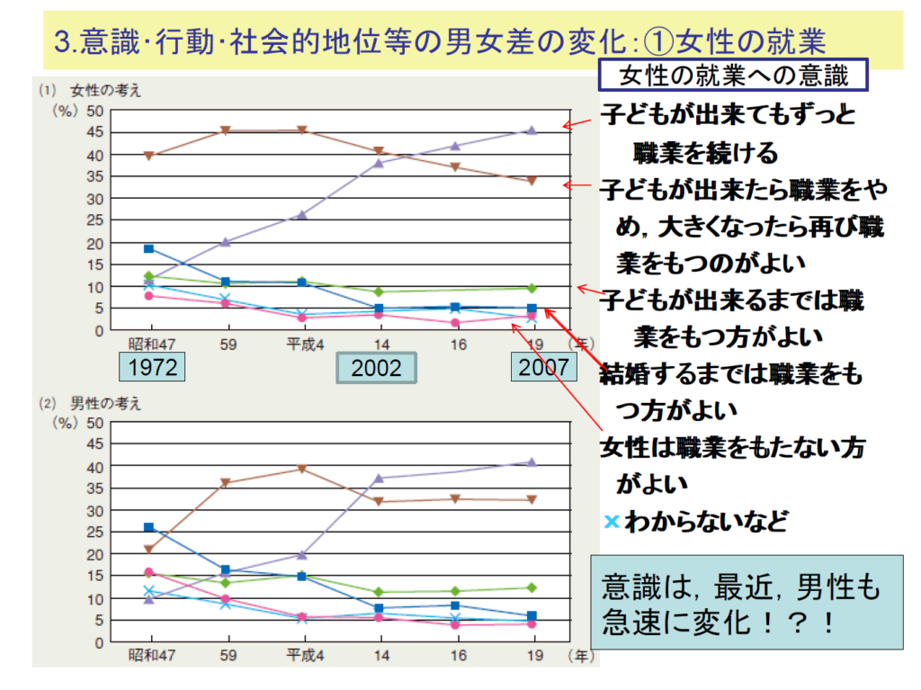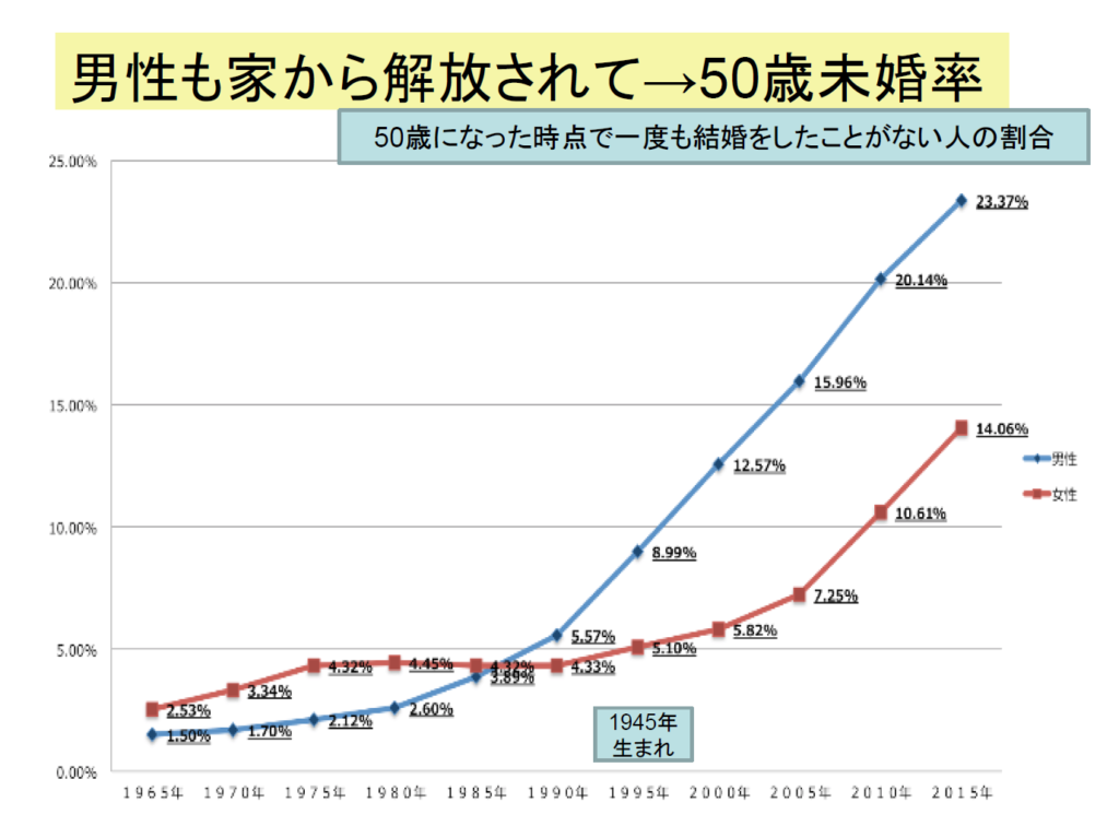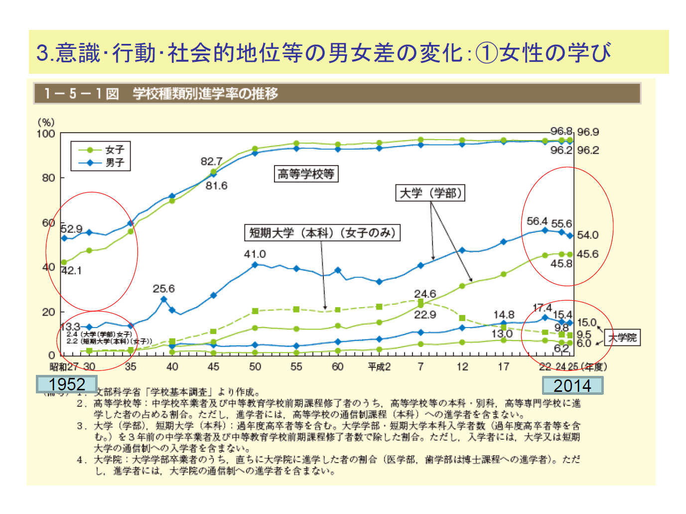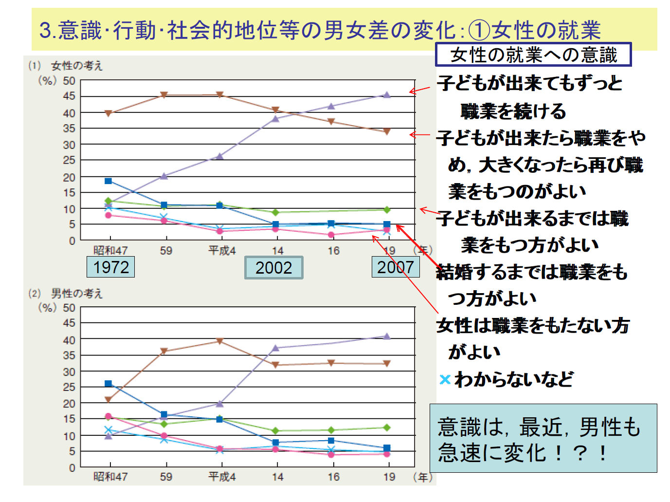 1945年の敗戦が転機となって男女とも自己実現を認める方向へ