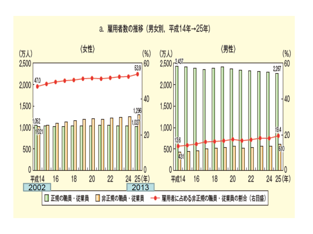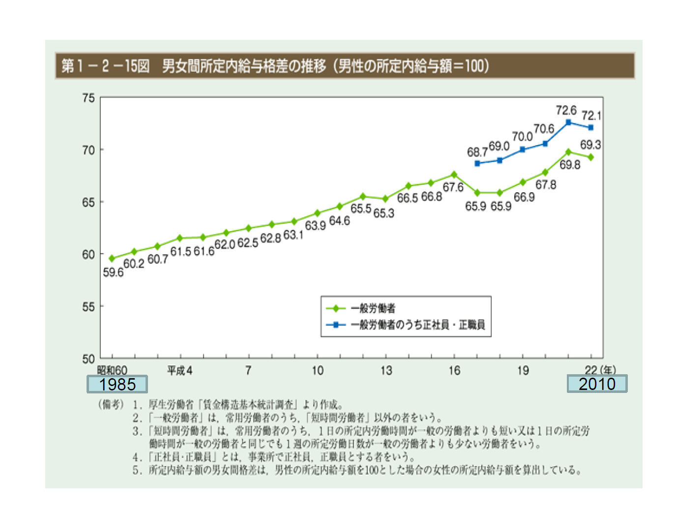 正社員・正職員であっても女性の給与は男性に及んでいません