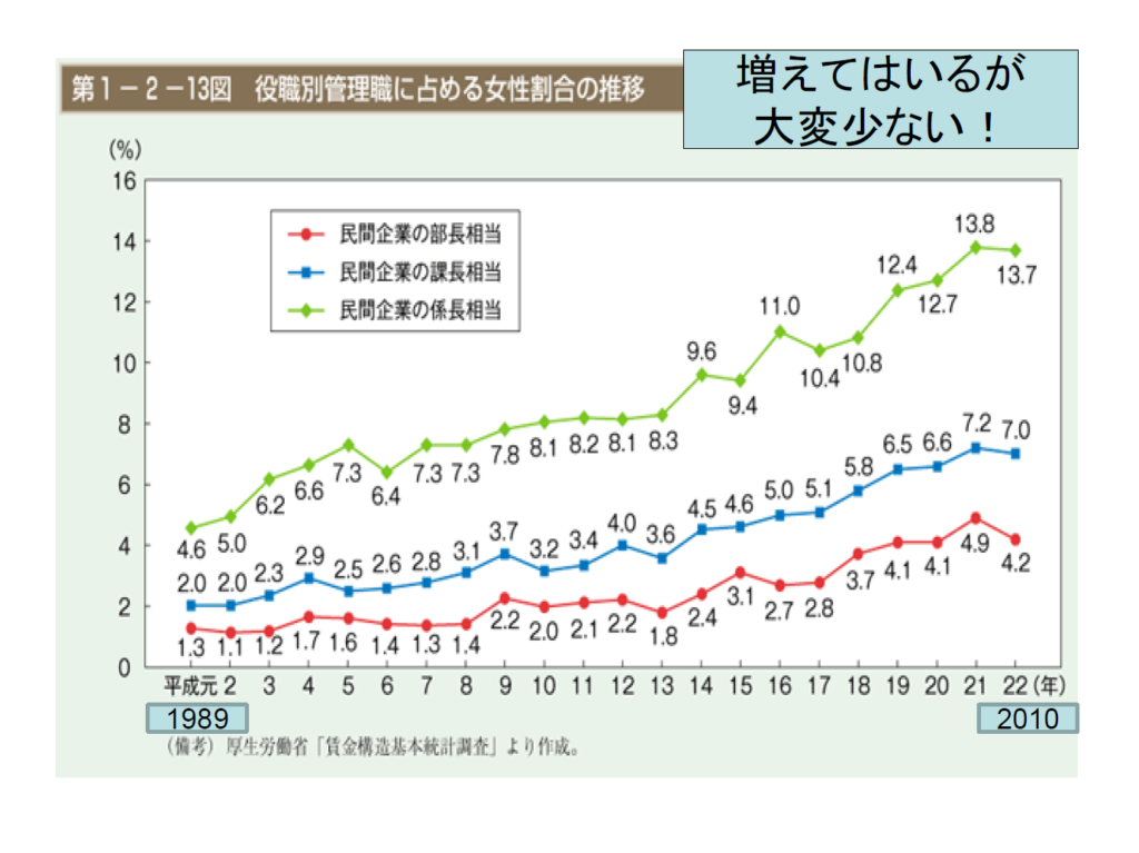 民間企業の女性管理職も増えてはいますが決して多くはありません