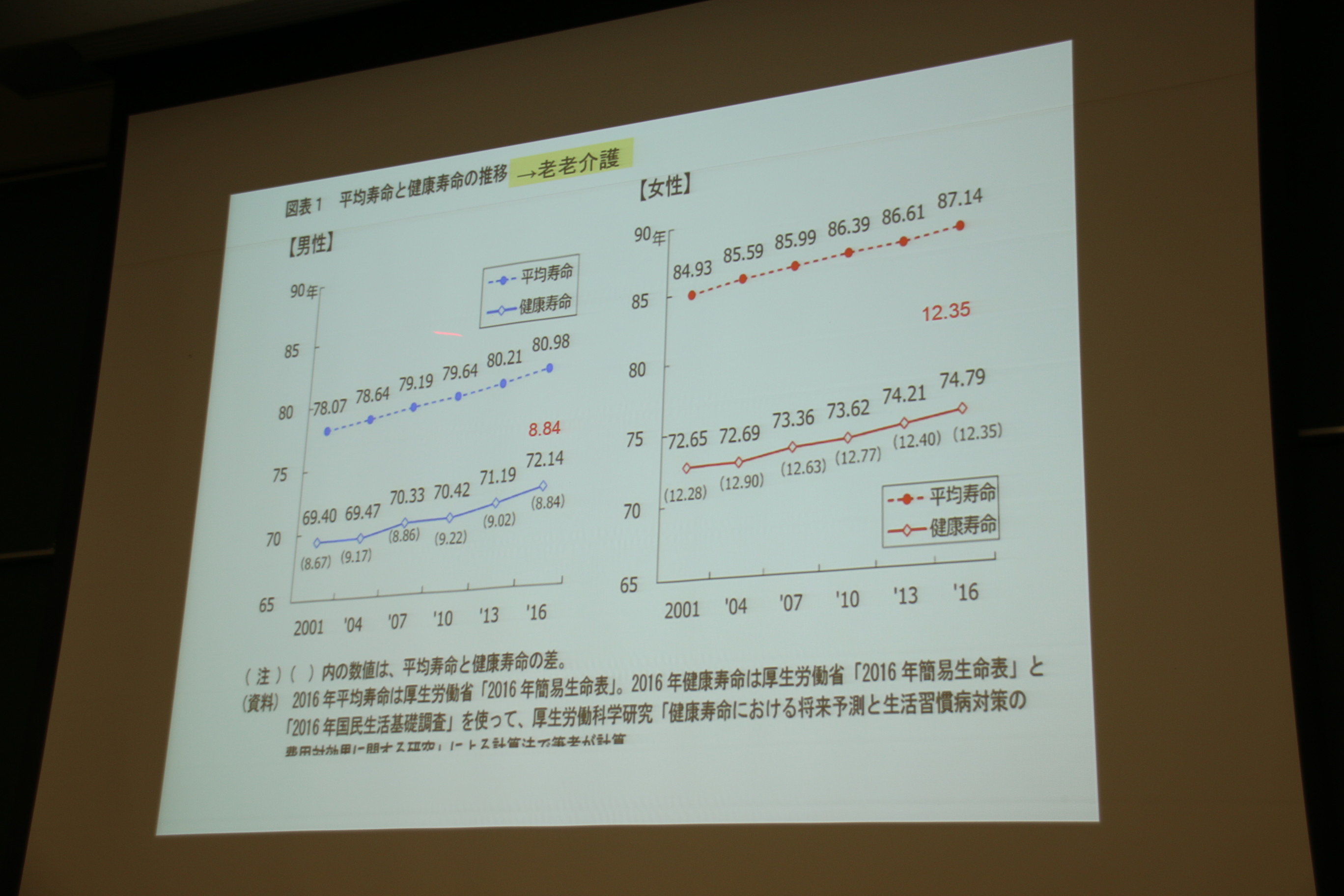 この資料で私(石丸)が個人的に印象的だったのが、女性の平均寿命は男性よりも長いのに、健康寿命はそれほど長くないということです(少ない給与で頑張ってきたというのに・・・)。ここから言えることは、特に女性に対する介護の需要があるはずだということでしょう。家庭内での老老介護が現実としてありますが、家庭単位に責任を押し付けるのではなく、社会全体の対策として介護施設を実感的に利用しやすい料金設定に見直した上に介護業界で働く方たちの待遇面がもっと改善されないといけないのではないでしょうか。