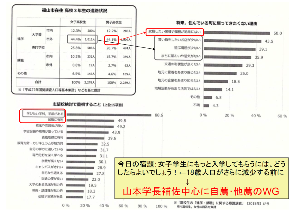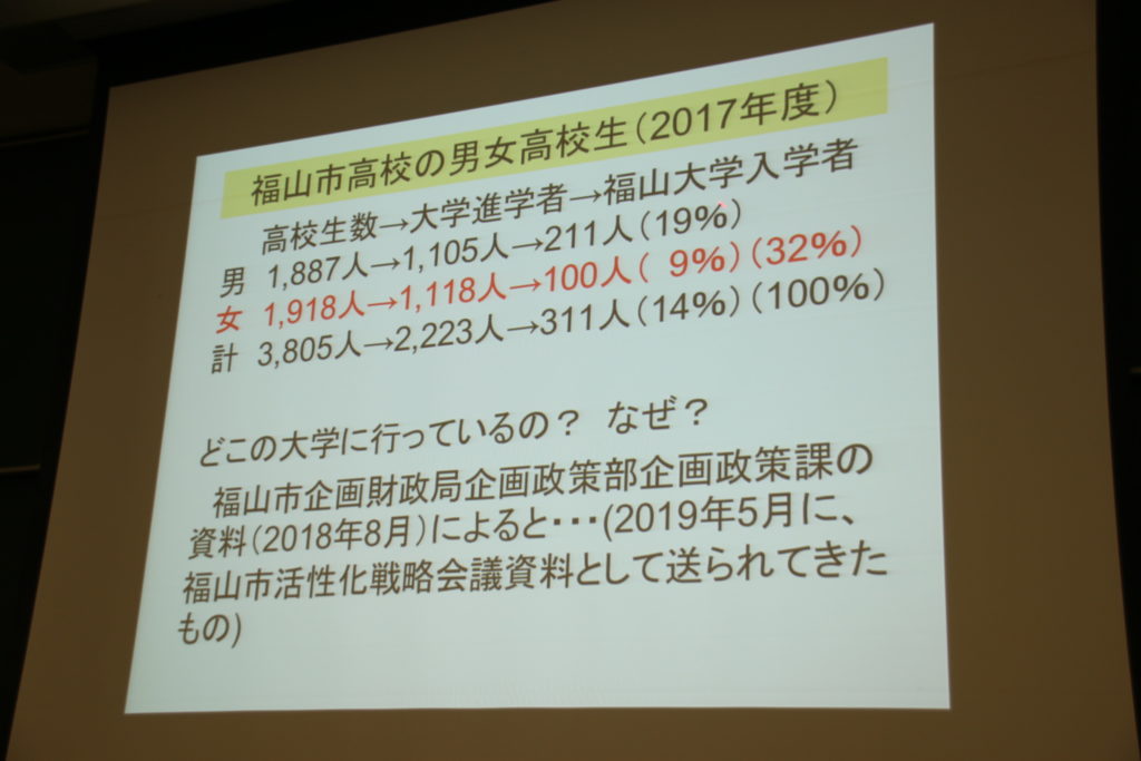 福山市内の高校生が福山大学に入学する割合(男女比は7対3)
