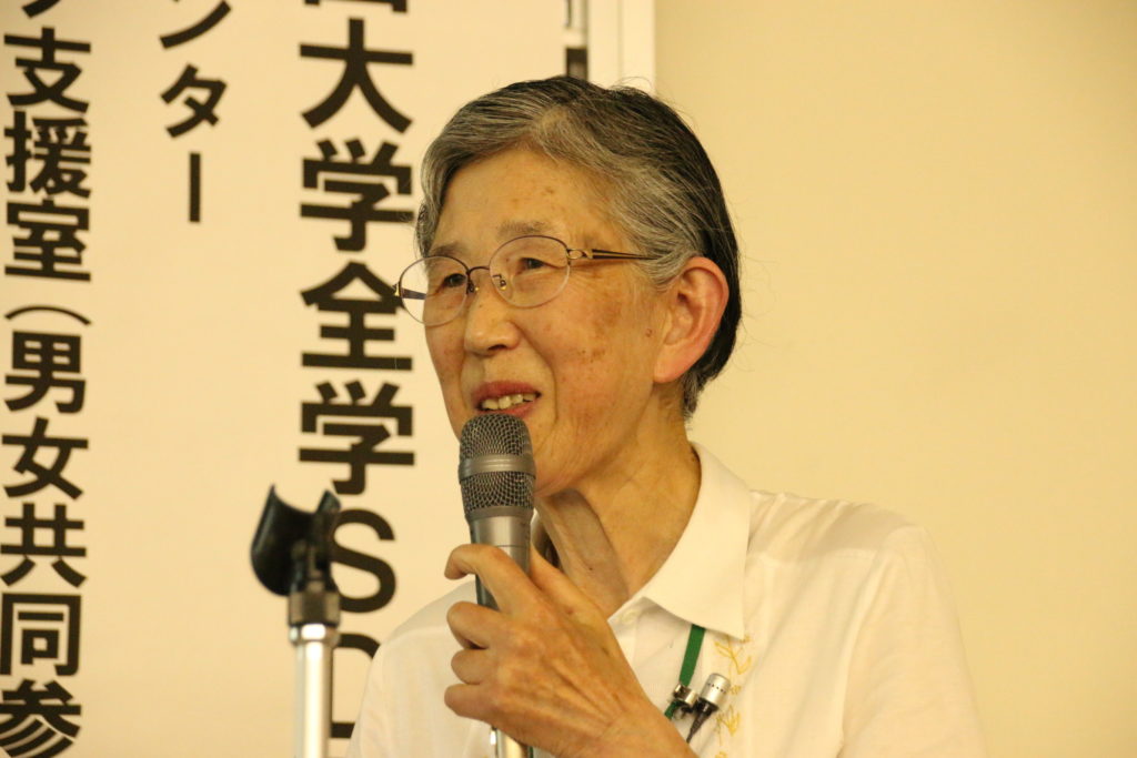 松田学長は、研究者として駆け出しのころに「女性であることを言い訳にはするな」と指導教官に厳しく言われたそうです。実際に「結婚・出産・育児を抱える女性研究者を育てることの難しさに直面した」という場内からの声もありました。最後の松田学長の笑顔の奥に現実の重さが垣間見える思いです。