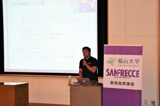 サンフレッチェ広島と提携して行われている2019年度『スポーツマネジメント論』が、4月9日(火)から開講され、今年度の授業も残すところあと4回となりました。