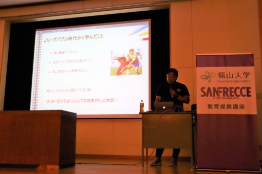 6月27日(木)に行われた第11回目の授業では、サンフレッチェ広島ジュニアユース監督の髙田哲也氏をお迎えして、講義をしていただきました。